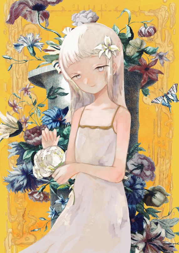 地中海の太陽に照らされたかすかに浅黒い肌と、漆喰のようなセミロングの銀髪、焼け落ちたろうそくのようなグレーの瞳をもつ彼女は、いわゆる『シチリア的』な特徴をもつ少女だ。広い額と大きな瞳、白いワンピースからのぞく細い手足は、まるでガラス細工でできた人形かギリシャ神話の妖精のようである。その幼く儚げな容姿は、見る者の庇護欲を否応なくかき立てるだろう。